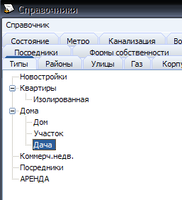 Як видно з малюнка вище, назва супертипу «Будинки та ділянки» не відображається. Відображаються тільки підрівні (дочірні вузли) цього супертипу. Для внесення об'єктів до бази даних Вам потрібно додати до кожного супертипу хоча б по одному дочірньому вузлу (тільки якщо їх немає спочатку).