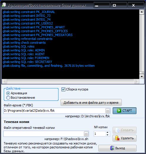 В итоге должен появиться файл "kvx.fdb" - это и будет восстановленная база из резервной копии.